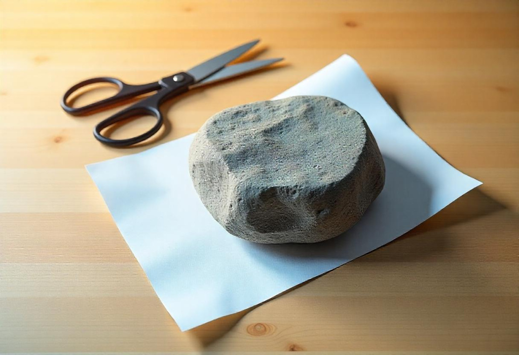 Одна из эвристик опытных игроков гласит, что в первой игре новички чаще всего выбирают «камень». Это верно: новички начинают с «камня» чаще, чем в трети случаев. Во-первых, в начальной позиции пальцы игрока всегда сжаты в кулак, и проще всего оставить их в таком положении. Кроме того, название игры начинается со слова «камень», и это первое слово, которое придёт игроку в голову, пока он раздумывает над выбором. Наконец, эта фигура ассоциируется с силой и непоколебимостью. Все эти факторы приводят к тому, что игроки выбирают «камень» в первом раунде чаще, чем предсказывает теория вероятности, и опытный игрок может этим воспользоваться. Против заведомо неопытного игрока нужно сыграть «бумагой».