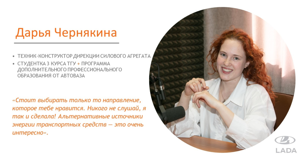 Гость очередного выпуска – Дарья Чернякина, студентка третьего курса института машиностроения ТГУ и по совместительству техник-конструктор инженерного центра LADA.