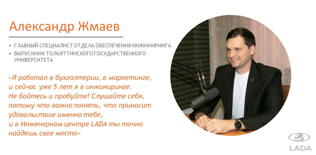 Герой нового выпуска – Александр Жмаев, дважды выпускник ТГУ, главный специалист отдела обеспечения инжиниринга инженерного центра LADA, член совета молодых специалистов.