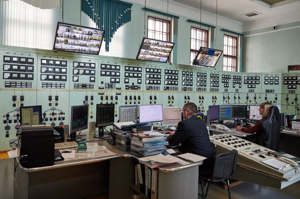 Если «сердце ГЭС» – турбины, расположенные в машинном отделении, то её мозг – это центральный пульт управления, который нашпигован тумблерами, световыми экранами, сигнализирующими о состоянии станции. В центре располагаются компьютеры, за которыми сидят управляющие. Даже наш приход не смог помешать их основной работе, что, несомненно, радует.
