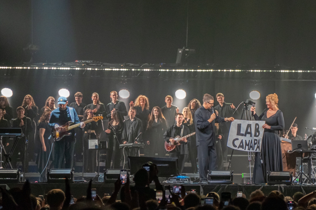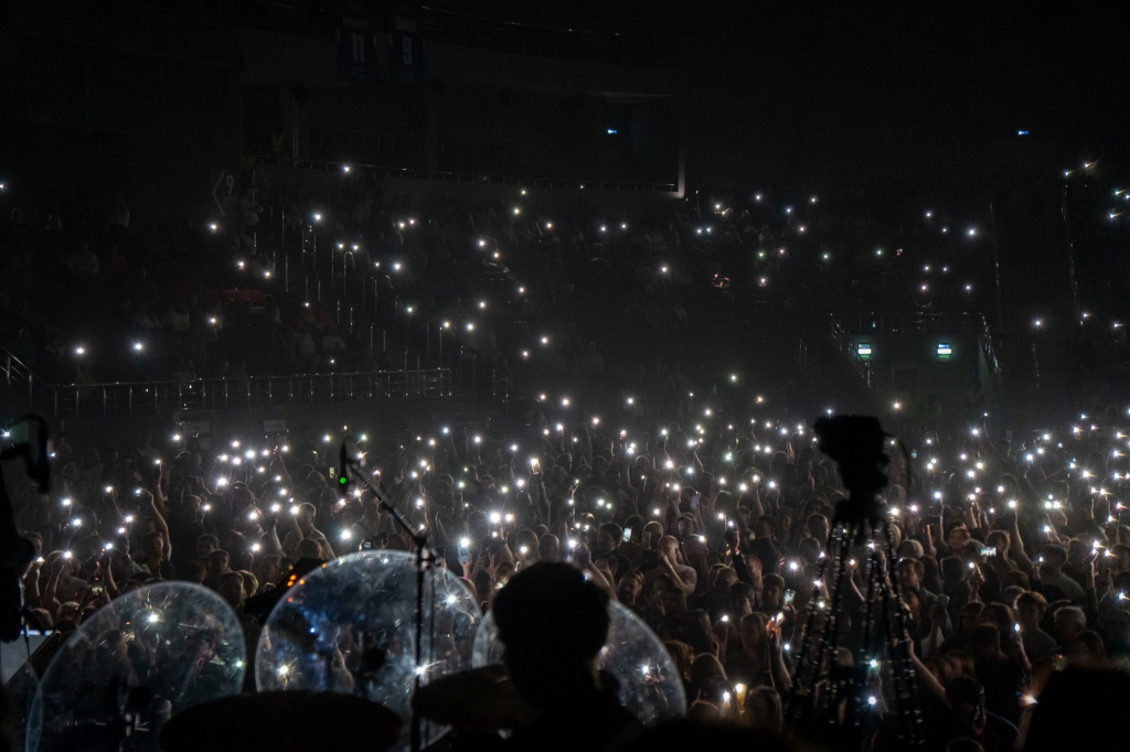 Когда со сцены донёсся припев песни, с которой начинался мой концертный день: Now \ Will somebody help us \ Take us somewhere \ Up \ Down \ Falling Inside \ Out \ Don’t hit the ground – с ностальгией подумал, что той камерности первого концерта больше нет. Стадионный размах, оркестр, хор профессиональный, свет, дым, экраны – всё по-взрослому. Хотя, быть может, ирония в том, что ушла не камерность – ушла наивность. Теперь каждый элемент шоу, каждая шутка, каждая пауза отрепетированы и отточены. Трюки уже знакомы фанатам по прошлым турам. И зрители будто бы именно за этим и приходят. Когда тебя среди ночи будит вой сирены и вообще тревожность зашкаливает, как никогда хочется замереть в приятном ожидании привычного ритуала. И когда на сцене тот же Беляев, но в сотню раз мощнее, а в зале – не сотня, а тысячи, понимаешь: будущее не наступает само. Его выстраивают. Концерт за концертом. И, несмотря на идеальную выстроенность программы, в ней есть место спонтанности, импровизации, просто жизни. А это дорогого стоит.