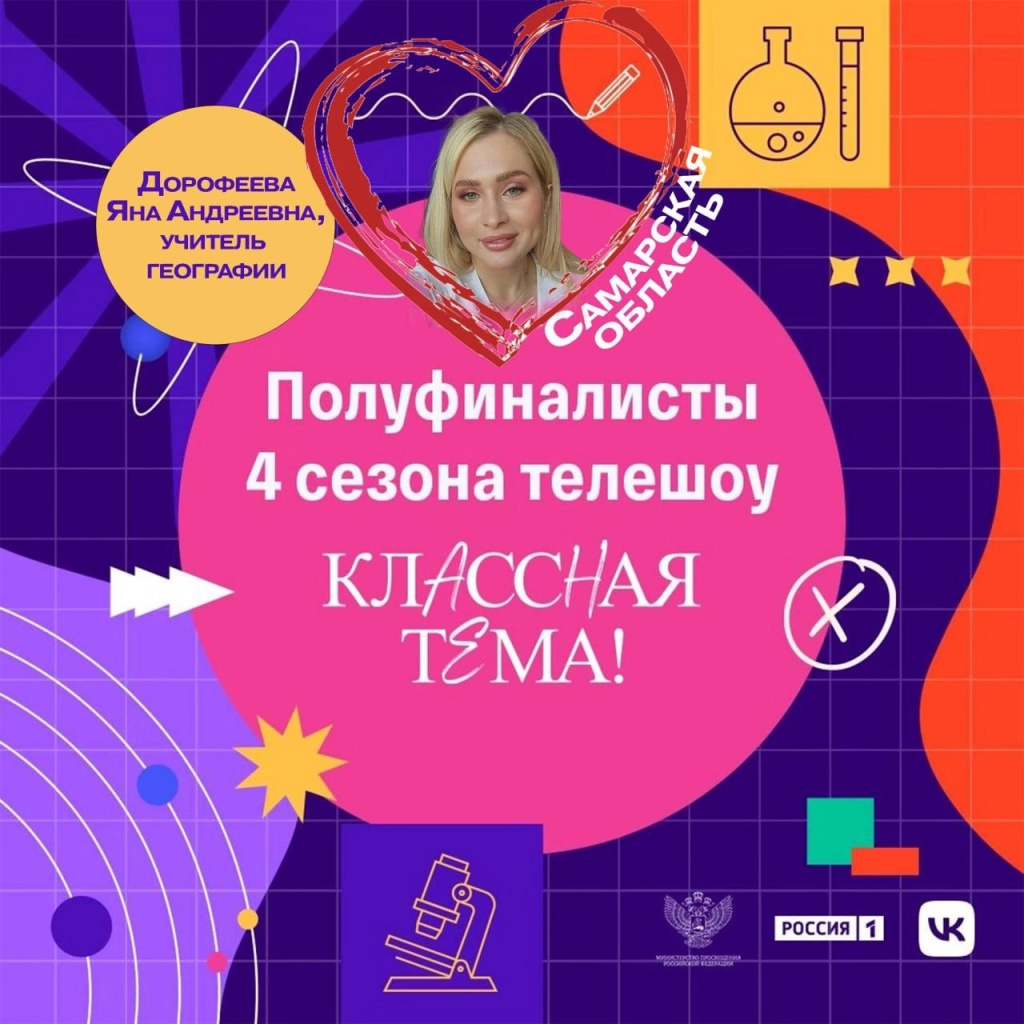 Члены жюри оценили профессиональное мастерство Яны Дорофеевой и пригласили её на съёмки полноценного урока географии в Москву. В кадре педагог устроила настоящее «образовательное путешествие» по рекам России. Урок вышел в эфире телеканала «Россия 1». Далее героиню ждёт самая сложная часть конкурса – 17 сентября в соцсетях «Классной темы» стартует народное голосование за лучшего педагога проекта. В случае победы в голосовании Яна Дорофеева сможет записать ещё один урок – уже перед настоящей публикой – и затем принять участие в финале проекта.