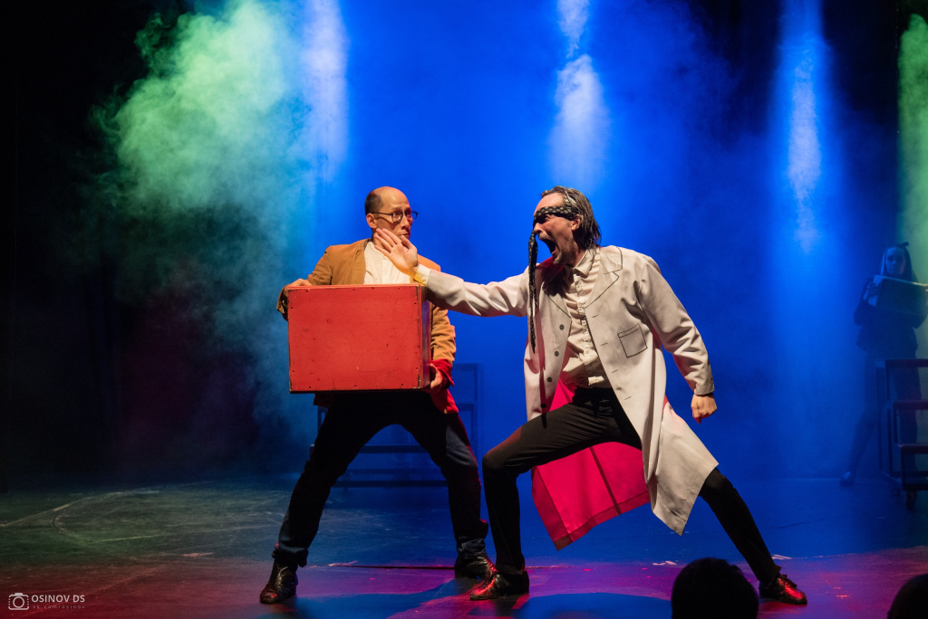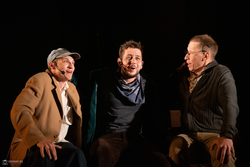 Первый конкурсный спектакль – «БЕгемот-кАмпот» (7+) – поставлен режиссёром Валерией Абумовой (Москва) по рассказам Леонида Сергеева. Это история трёх школьных друзей, которые уже в преклонном возрасте случайно встретились в очереди к врачу.
