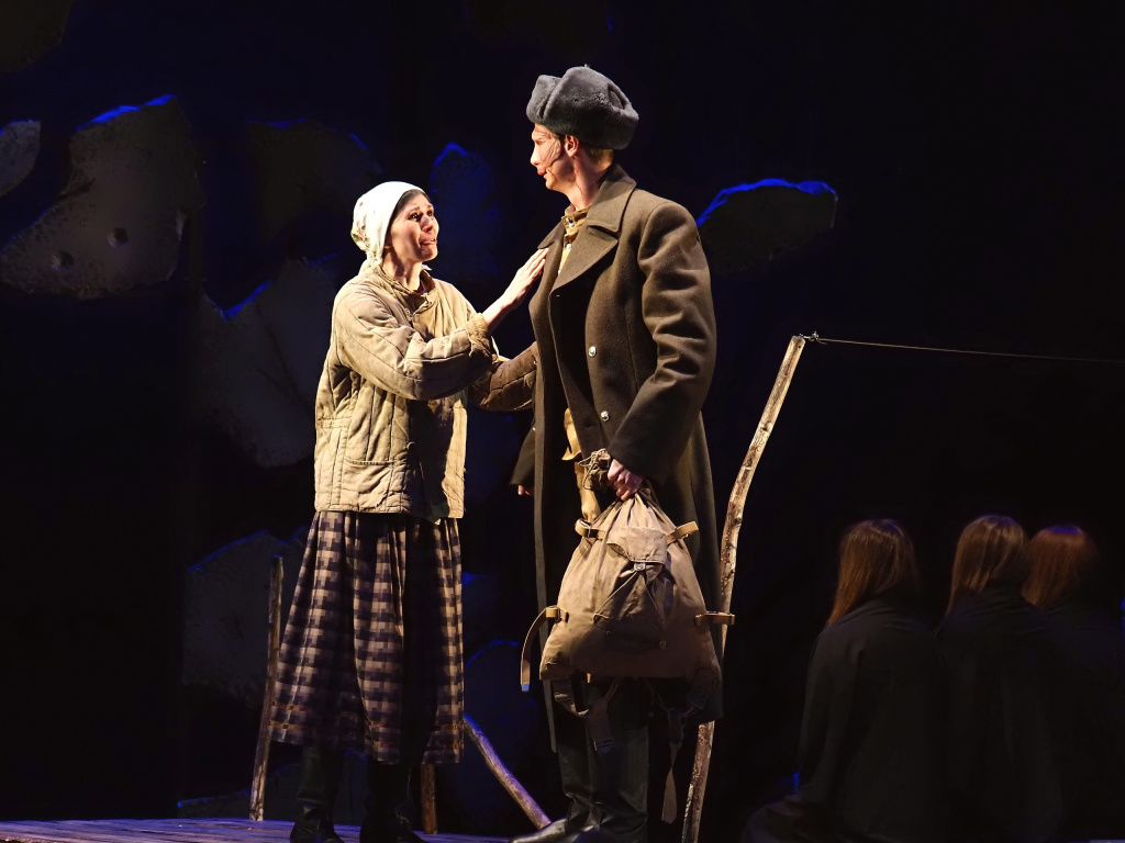 Однако есть в спектакле и то, что во все времена противостояло войне и смерти. Это любовь. Несмотря на все трудности и лишения, каждого солдата дома кто-то ждёт. Хоть без ноги, хоть без руки, главное – живым.