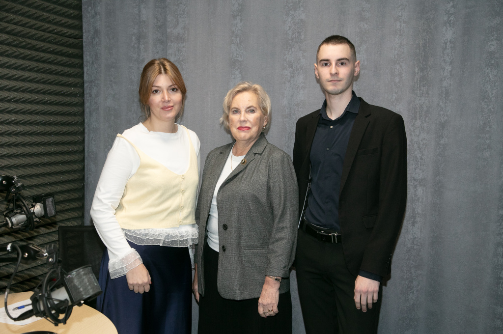 Слева направо: ведущая прямых эфиров Валентина Назаренко, Марина Саврина, корреспондент Максим Волков. Фото: Артём Чернявский / Молодёжный медиахолдинг «Есть talk!» ТГУ