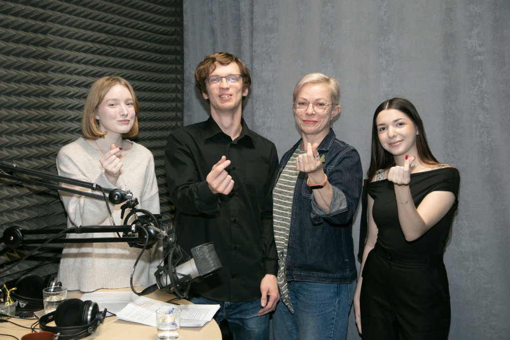 Слева направо: корреспондент Анна Шайдакова, Евгений Стёпочкин, Ольга Паршина, корреспондент Элиза Рамазанова. Фото: Артём Чернявский / Молодёжный медиахолдинг «Есть talk!» ТГУ