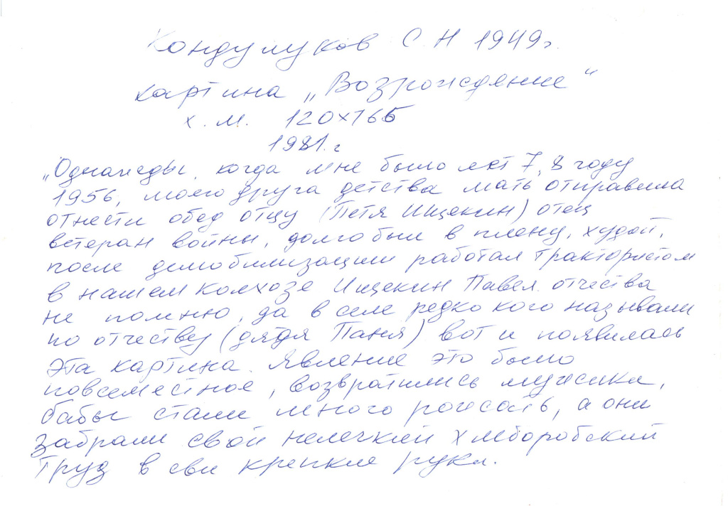 Авторская подпись на оборотной стороне фотографии картины «Возрождение»