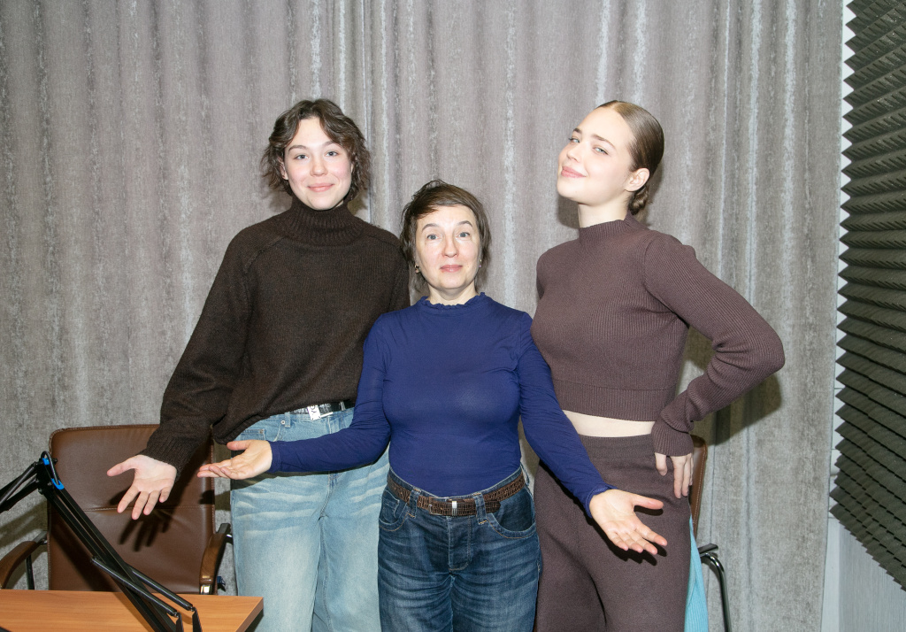 Диана Третьякова (в центре) и корреспонденты Луиза Чистякова (слева) и Алина Смирнова. Фото: Артём Чернявский / Молодёжный медиахолдинг «Есть talk!» ТГУ