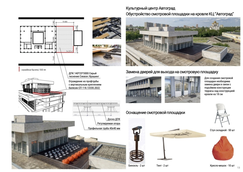 В основе концепции (.pdf, 21,7 MB) предложенной специалистами ТГУ, – работа с городской идентичностью. Авторы выделили три главных «якоря» туристского центра Автозаводского района Тольятти: автомобильное наследие (город, построенный вокруг АВТОВАЗа), город-сад (Итальянский сквер) и советский модернизм (уникальные архитектурные объекты эпохи, включая триптих «История транспорта» и стелу-панно «Радость труда»). В итоге появился исторически целостный и одновременно актуальный проект, который создавался с прицелом на всероссийский конкурс национального проекта «Туризм и индустрия гостеприимства».