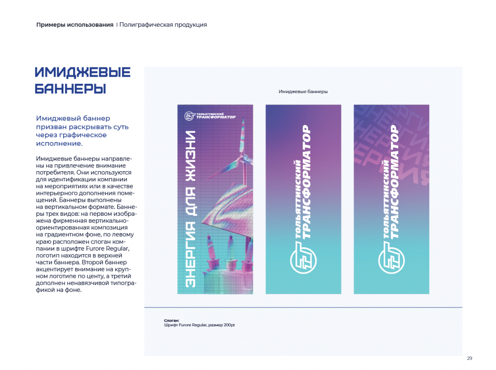 После того как все элементы нового прогрессивного дизайна были согласованы, а правки учтены, брендбук отдали заказчику. Автор дизайна Виктория Князева получила за свою выпускную квалификационную работу оценку «отлично», а «Тольяттинский Трансформатор» обрёл новый визуальный образ, который уже используется в работе. Ещё до защиты диплома предприятие апробировало разработку студентки во время рабочего форума. Его участники получили бейджи, визитки и программу мероприятия в обновлённом дизайне.
