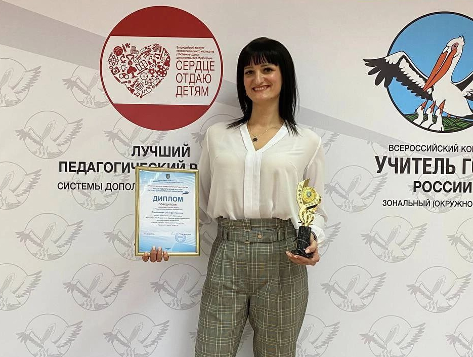 О. Т.: Я в 2022 году в Самарской области стала лауреатом второй степени в художественной направленности. И в этом же году вместе с Вадимом Николаевичем мы отправились в Красноярск. И на всероссийском уровне в этой же направленности, в художественной, я стала финалистом всероссийского конкурса «Сердце отдаю детям».