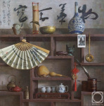 Пока Игорь Геннадьевич отвечал на мои бестолковые вопросы, я все больше проникалась атмосферой его мастерской. На высоких стенах висят множество картин, вдалеке стоят подрамники, на больших мольбертах удобно устроились большие полотна, на полках стоят сувениры из далеких стран, где побывал художник.