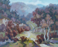 Ю.А.: Как это так, не писать этюды? Это же природа. Настолько все созвучно, сгармонированно, лучше этого не сделаешь. Все-таки человечество всю жизнь пытается ее разрушить. А я хочу показать людям гармонию эту, чтобы она была в жизни. Мне хочется, чтобы люди объединились. Эта гармония людей приведет к счастью. Чем человек духовнее, нравственно развит, он не будет браться за оружие. Ему это не нужно, у него совсем будут другие настроения и эмоции. Поэтому искусство должно объединить всех. Светит солнышко одно на всех и нечего там ничего делить. Я на одном месте пишу, это место у меня классическое, дежурное, но оно всегда разное даже по цвету, иногда даже по форме деревьев. Одни деревья падают, потом другие вырастают. То есть все идет от того, как ты увидишь, поразишься, что тебя удивит. Ты вот восхитился. Тебе это страстно и ты начинаешь это передавать на холст.